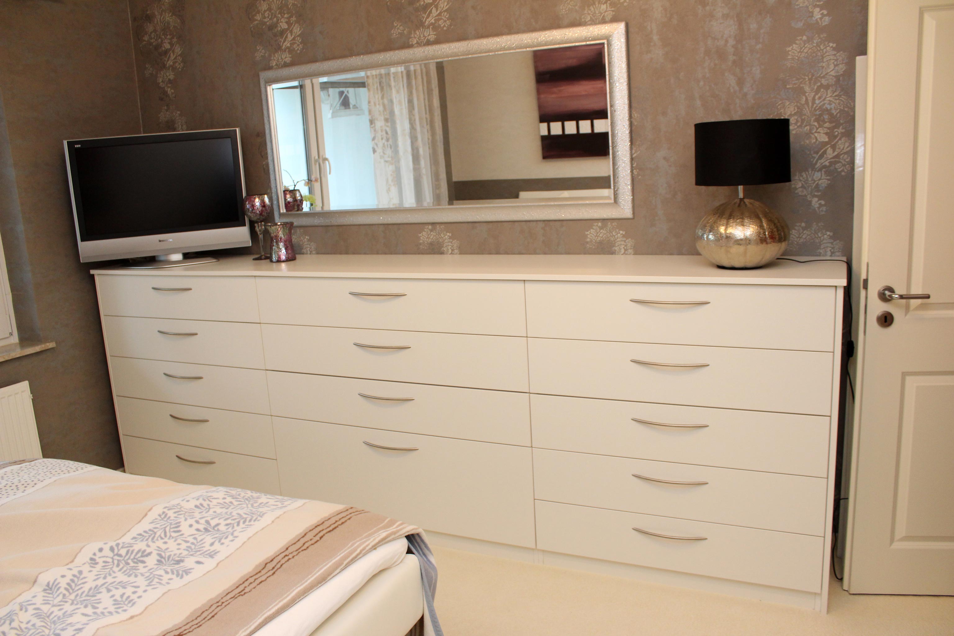 In unserer flexiblen Möbeltischlerwerkstatt fertigen unsere ausgebildeten Tischlergesellen beispielsweise Badmöbel, Raumteiler, Regalwände, Flurgarderoben, Vitrinen, Wand-zu-Wand-Schränke, begehbare Schränke, Schlafzimmer in Echtholz oder Furnier handwerklich maßgerecht. Einbau, zugeschnitten auf Ihren Raum und Ihren Bedarf. Jede Nische kann sinnvoll eingebunden und genutzt werden.